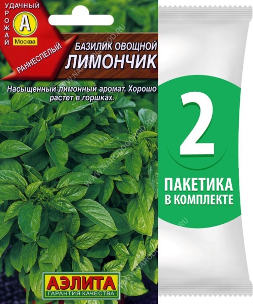 Семена Базилик овощной раннеспелый Лимончик, 2 пакетика по 0,3г/150шт