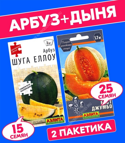 Семена Арбуз Шуга Еллоу + Дыня Бест Джумбо, 2 пакетика
